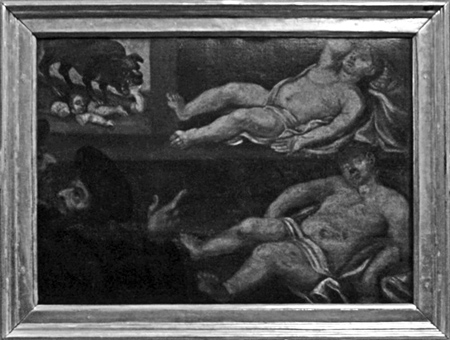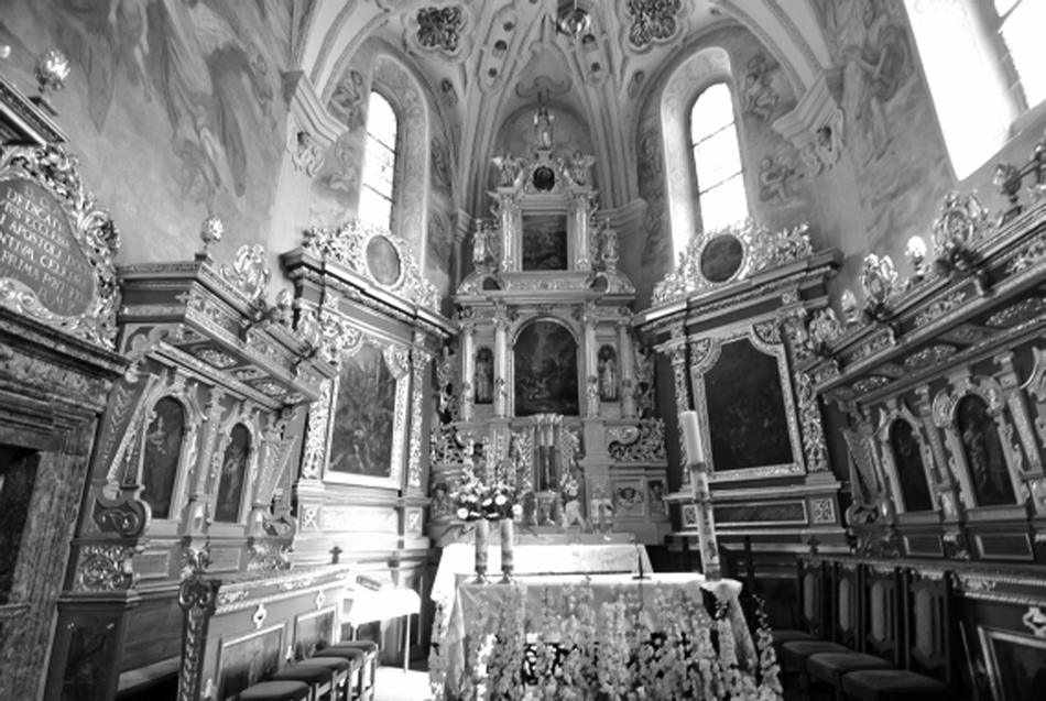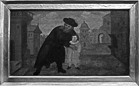 Malowidła na klęcznikach stalli przedstawiające sceny mordów rytualnych. Kościół Nawrócenia św. Pawła Apostoła w Sandomierzu. Carl de Prevo, I połowa XVIII w.